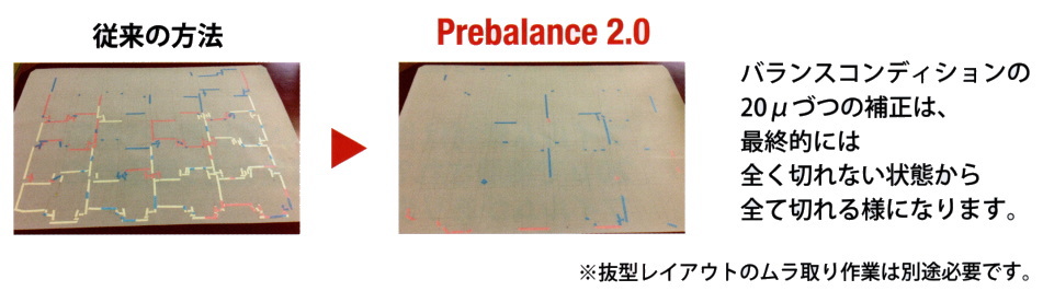 新型移行時や全面刃取替によるムラ取り台紙の再作成時にプレバランスシートへ移行できます。 - ムラ取り作業は何故必要?実は打抜機オペレーターの大半が気付いている?
